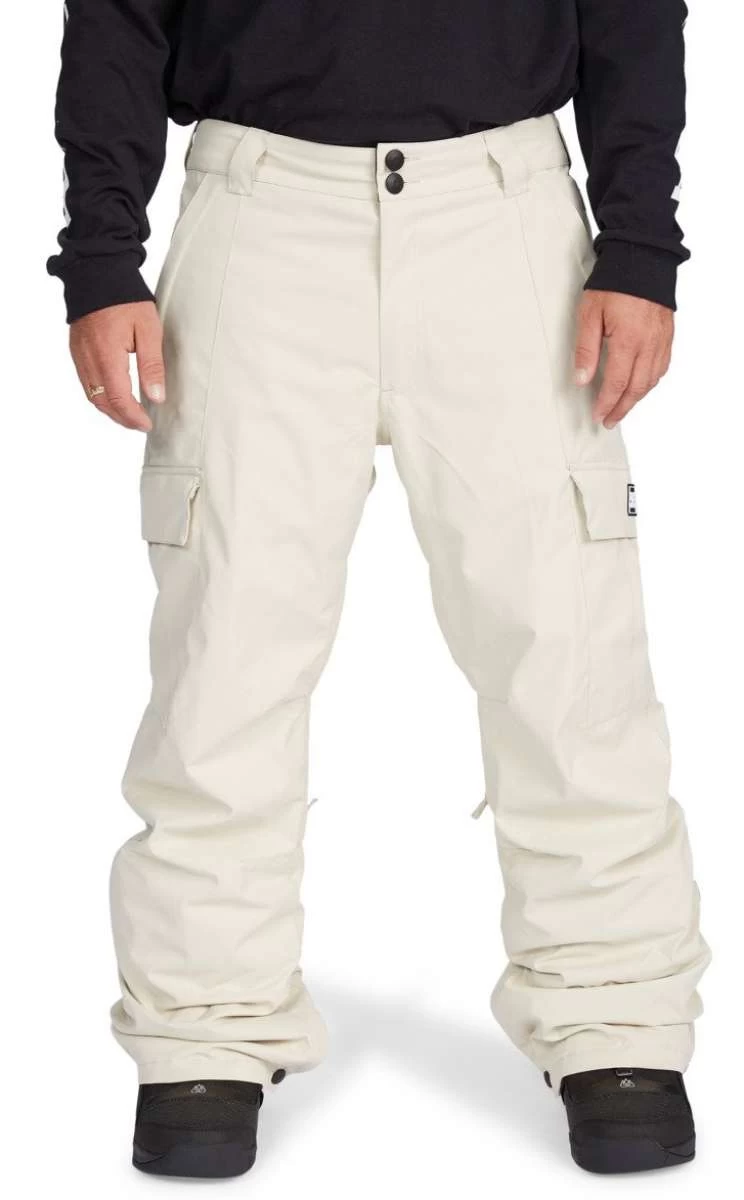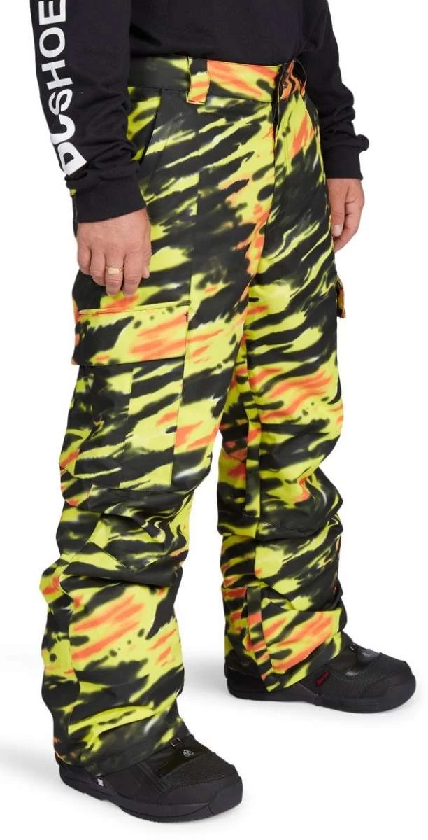 These 100% woven polyester classic cargo banshee snowboard pants will provide you with the warmth and style that you have been looking for. These DC waterproof pants are especially made to keep you dry and cozy while ensuring a nice flow through the mesh lining. The internal waist adjuster plus the hand warmer pockets will keep you relaxed while the jacket to pant attachment system and the boot gusset with snap closures will keep the pants in place while you make memories in the snow.